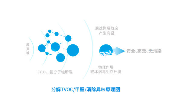 利用超聲波物理作用在空氣媒質中傳播高頻耦合性疏密媒介振動,帶動氣溶膠進行高速據合運動。靠強烈的加速度往復運動可以對氣溶膠中的新冠病毒和耦合微生物