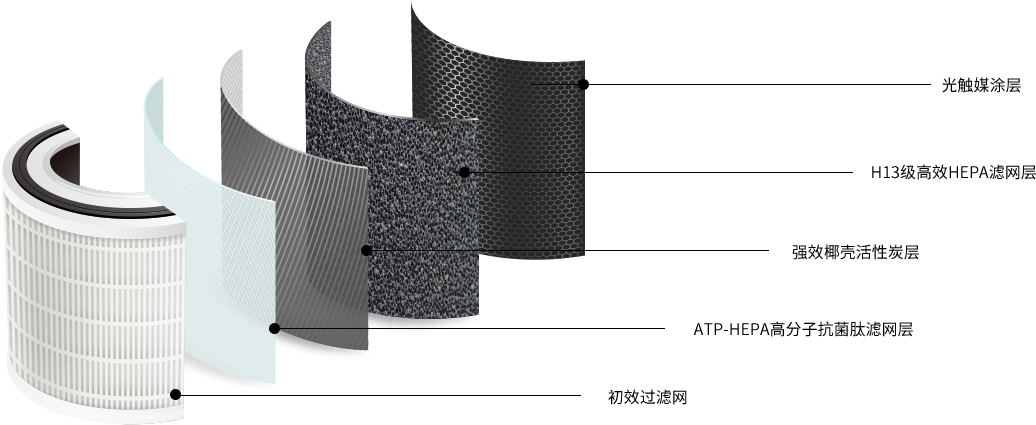 采用 HEPA H13級5層高效濾網,可快速過濾