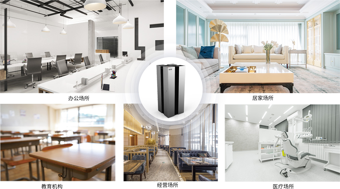 ,宜用于醫療、辦公、居家、經營、教育機構等場所進行高效空氣消毒,尤其適用于各種大空間場所。